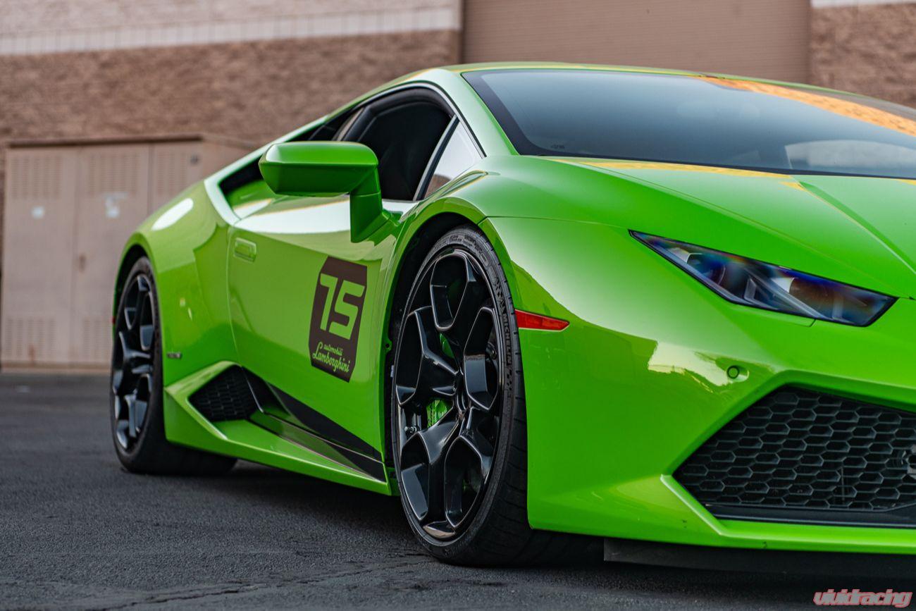You can now lower your Lamborghini Huracan ride height with these new VR Performance Lowering Springs by Vivid Racing! The Vivid Racing springs are made in collaboration with Swift Springs of Japan to bring one of the best spring manufactures to meet the needs of Lamborghini owners. The Huracan is a gorgeous car but could use some lowering to get rid of the unnecessary wheel gap. With the factory front lift system, a lowered car is no problem to give a daily driver a meaner stance. Our goal was to create the perfect lowered look without sacrificing performance. To achieve this, we took many measurements and provided a plethora of feedback to Swift Springs. To not impede the function of the sophisticated suspension or alter how these settings would feel when driving, we kept very close to the stock spring rates for the front and rear. This continued to give the car a very comfortable ride as it is stock but still allows for the performance to be turned up with Huracan's suspension system. The perfect ride height is accomplished by lowering the front about .65 inches and the rear at 1.1 inches. This gives a perfect stance with the stock 19/20 inch wheel setup.